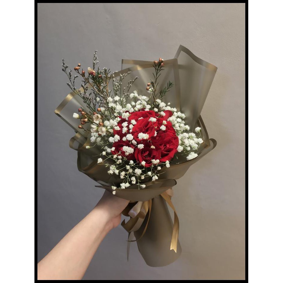 Guaranteed Hand Bouquet 10 Stalks of Fresh Red Roses Bouquet and Baby Breath