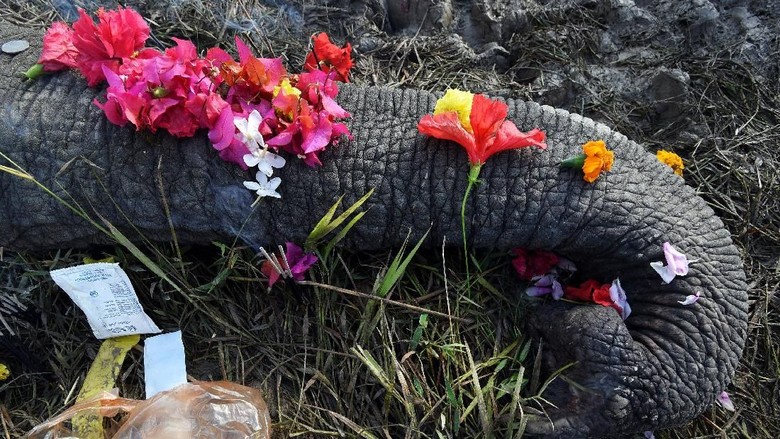 Photos of Sad Moments When Residents Sprinkle the Last Flowers On Dead Elephants