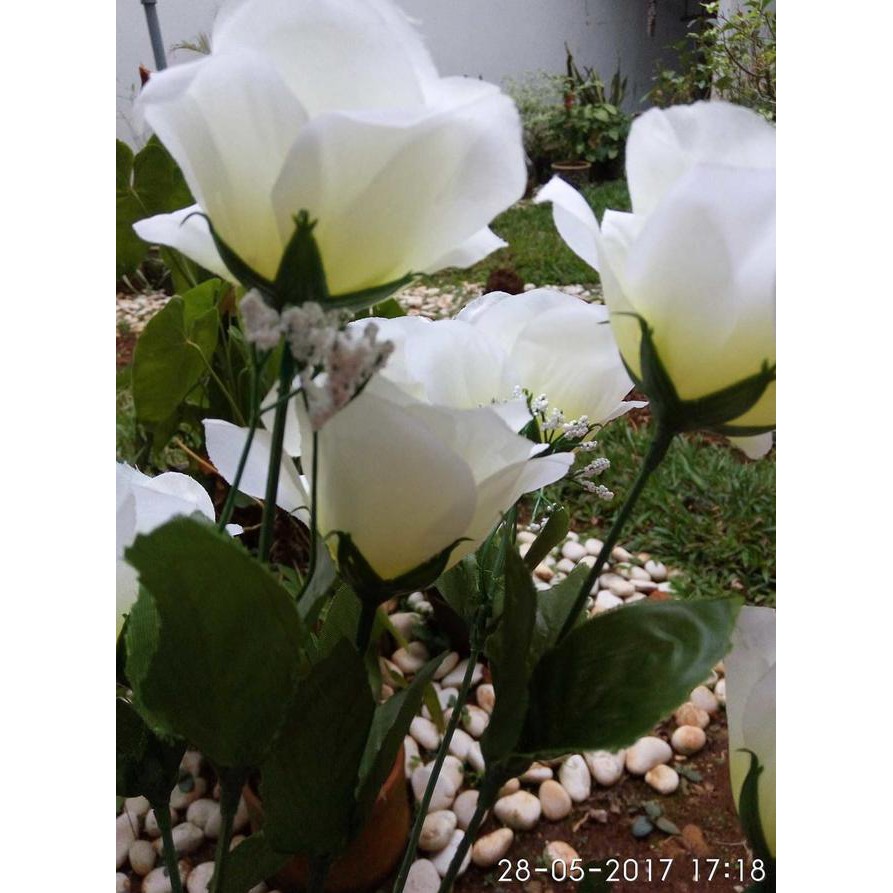 Promo Bp 193 Roses Artificial Flowers Plastic Flowers Beautiful White Decorative Flowers