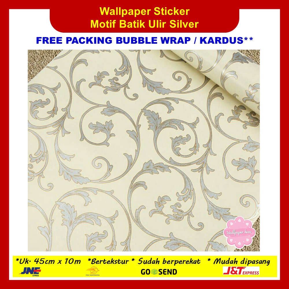 Wallpaper Sticker Wall 45cm X 10m Batik Ulir Silver Walpaper Sticker