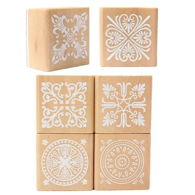 US 5 05 17 Off 6 Assorted Wood Rubber Stamps Square Seal Handwriting DIY Flowers Lace Crafts On Stamps From Office School Supplies