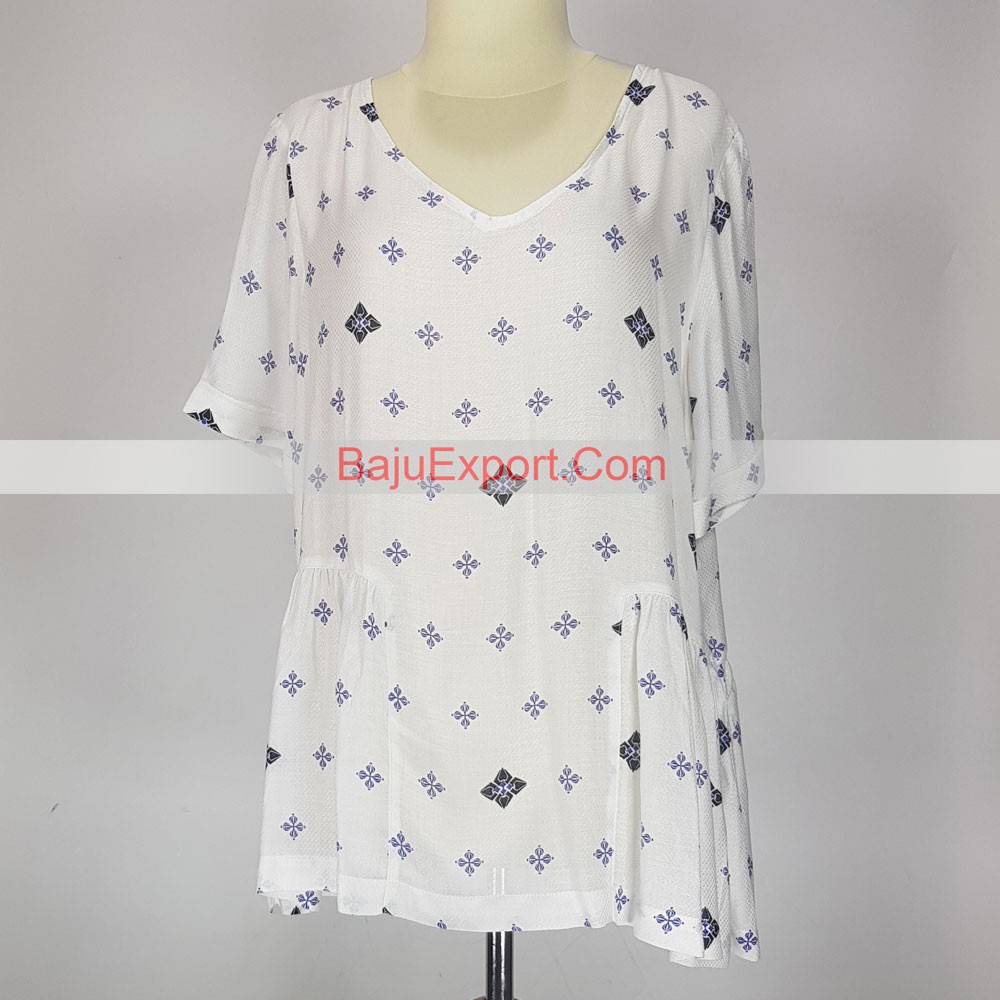 Blouse Jaqcuile Putih Biru Hitam Corak Bunga Ukuran 14