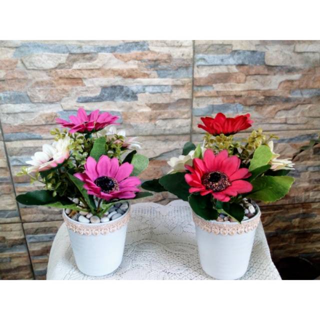 Rangkaian Bunga Artificial Daisy Vas Plastik Tebal Dengan Renda